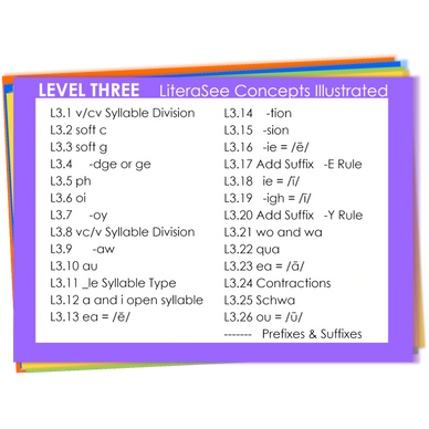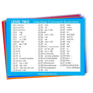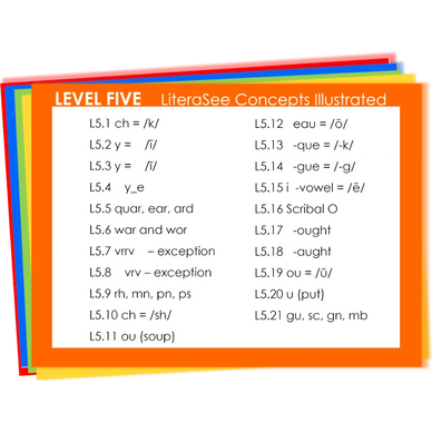 LiteraSee cards reinforce the concepts taught in all five levels of LiteraSee Lesson Plans. Please see the index cards below.